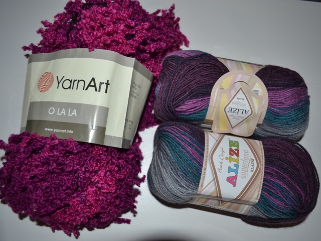 Итак, что имеем. Описание. Я вяжу по первому опсианию - голубой жакет. 5 мотков Alize superlana rlasik турецкого производства. 25% шерсть/75% акрил, 280 м/100 гр. Производитель предлагает вязать  спицами № 3-4. У меня 4. Еще для украшательства имею YarnArt "O la la" (этакие висюльки).