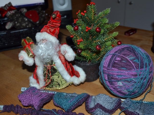 По ощущениям: мне не хватит этих ниток, ибо кажется, что коротковат для моей фигуры будет жакетик. Поэтому или докуплю таких ниток или, чтобы разбавить на 50% темно-лиловый низа, верх полочек сделаю серыми. Пока буду думать и свяжу "хвост", потом рукава, а верх из того что останется или куплю. Да, я традиционно больная на голову и вчено что-то в процессе меняю ;).