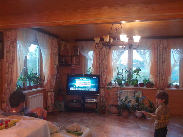 Пока я шила шторы в зал (а шила я их месяц), в столовой появилась новая люстра с... сиреневыми цветами. Тадам! Пока выкрутилась вот так, купив один в один по цвету вторую штору, но буду еще крутить вертеть варианты подвешивания. Опять же нельзя закрывать балконную дверь (она же входная во двор). И светлые шторы (а они в любом случае останутся) закрывают трубы отопления. Может вы что присоветуете?